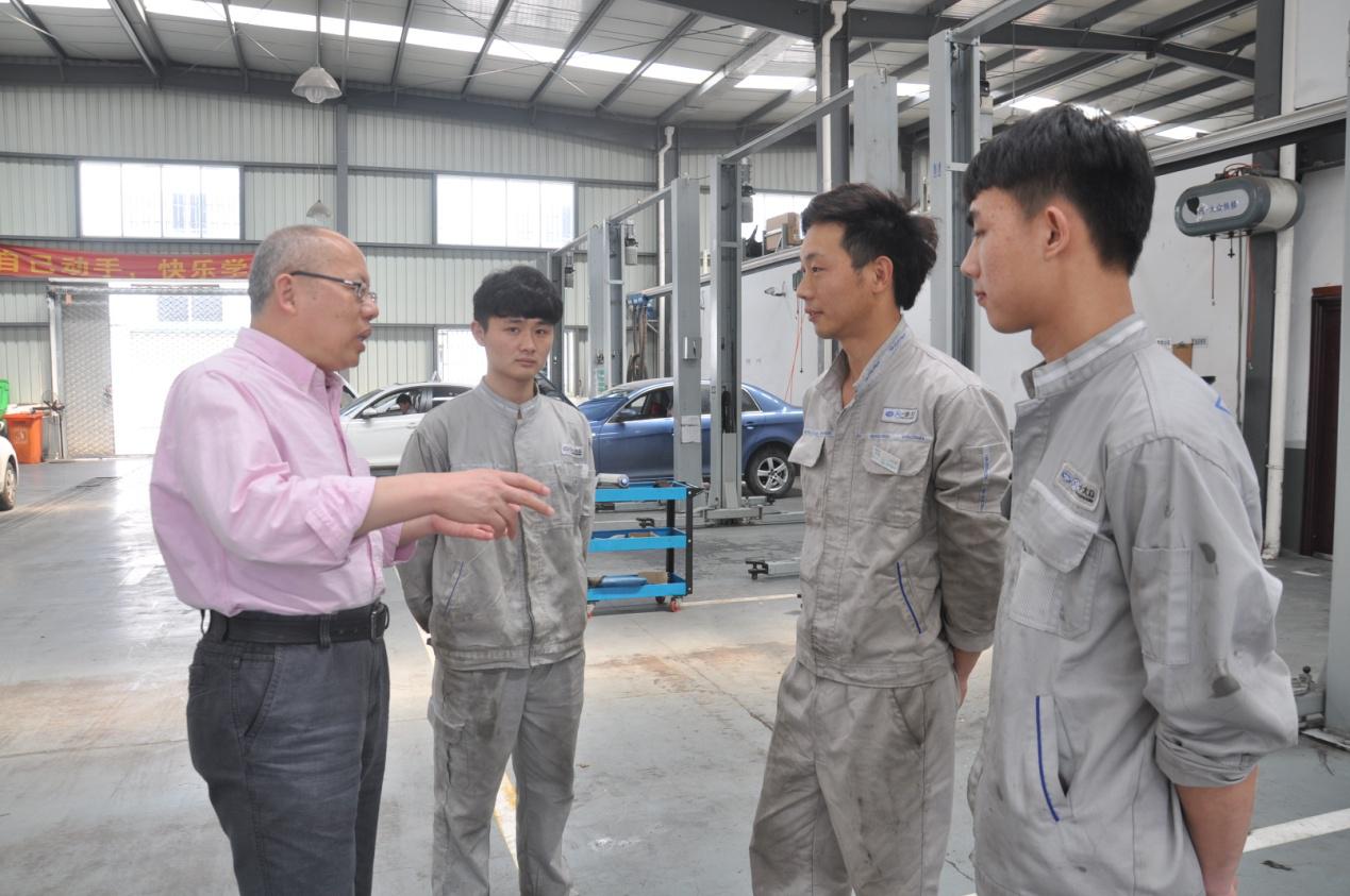 安蓉泉与在台州市汇腾汽车销售服务有限公司顶岗实习的学生及企业指导教师交流