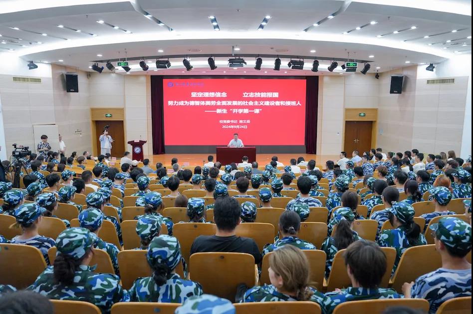 陈文岳首先对来自全国各地的4200余名2024级新同学们表示了热烈欢迎,感谢大家在美好的新时代、美丽的秋季里来到了美丽的杭职院。他和同学们一道重温了习近平总书记在全国教育大会上的重要讲话精神,希望全体师生把思想和行动统一到习近平总书记重要讲话精神和党中央决策部署上来,牢记使命、奋进担当,为建设教育强国贡献力量。他勉励同学们,职业教育前途广阔、大有可为,要坚定理想信念、立志技能报国,努力成为德智体美劳全面发展的社会主义建设者和接班人。