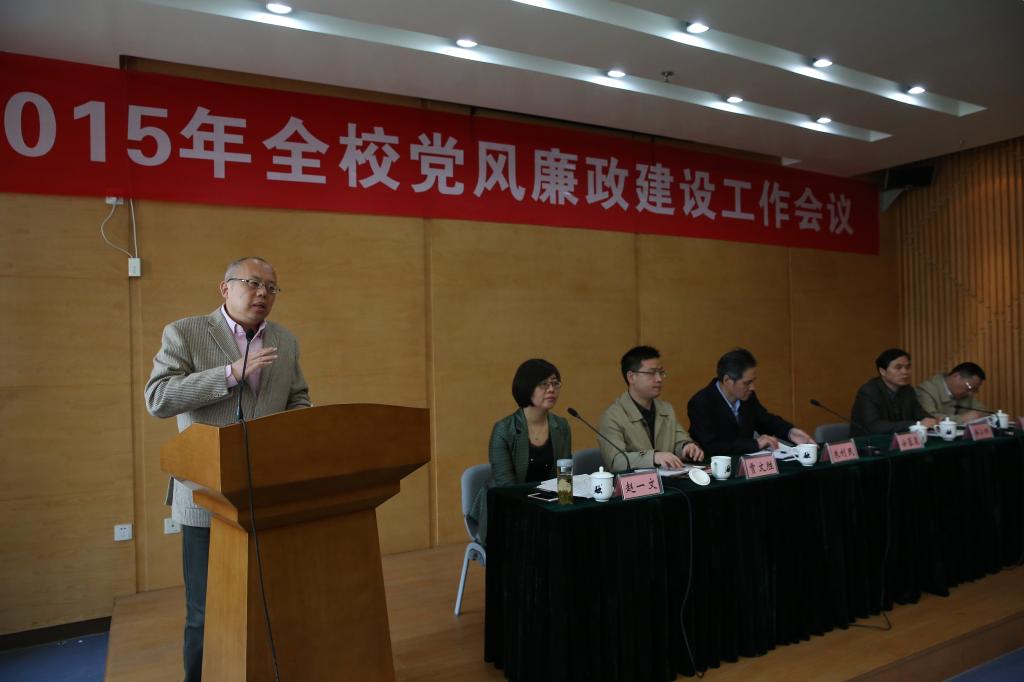 校纪委书记陈泉淼作学校党风廉政建设工作报告。他回顾总结了2014年学校党风廉政建设工作情况,并从加强组织领导,落实党风廉政建设工作新要求;加强宣传教育,切实筑牢思想根基;强化监督检查,规范权力运行和推进重大决策部署的落实;深化作风建设,驰而不息纠正“四风”和推进校风建设;坚持从严要求,加强纪检监察干部队伍建设等五个方面,全面部署了2015年的主要工作任务。