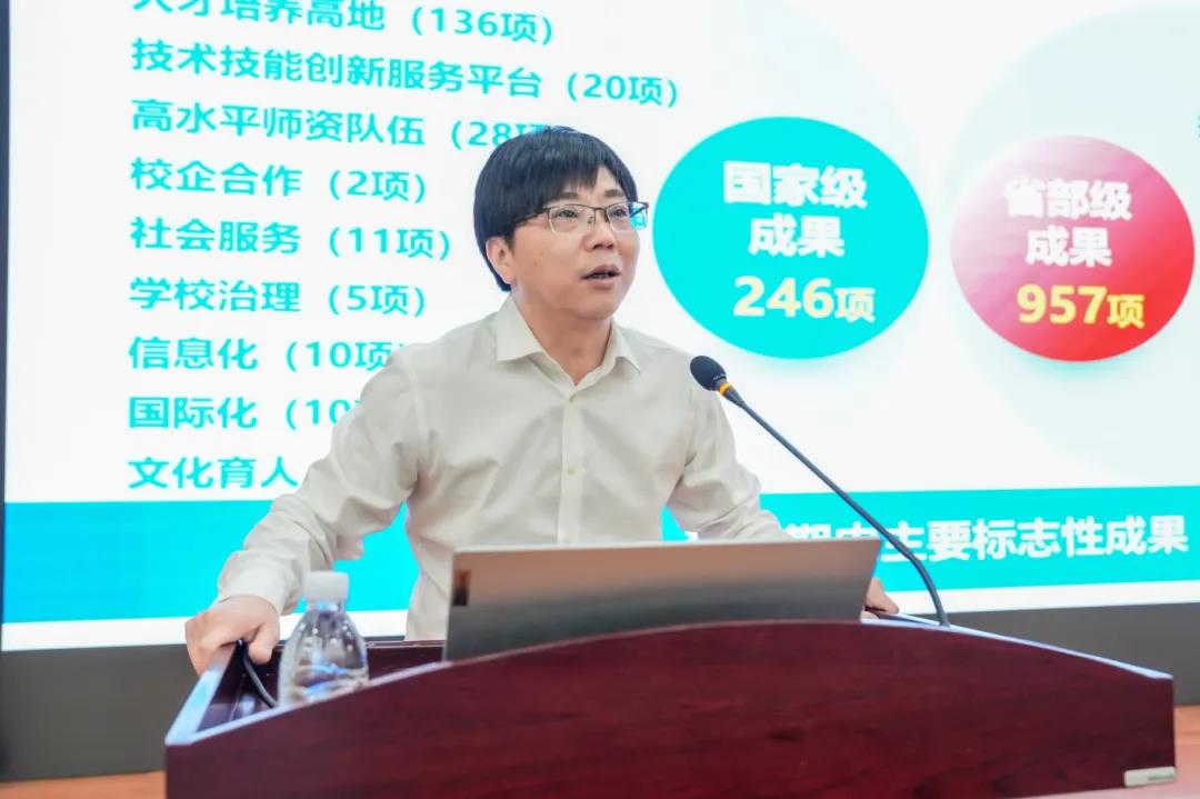 徐时清向离退休教职工表达了节日的美好祝愿,并从“双高”建设总体情况、取得的标志性办学成果和建立多跨协同模式创新等方面,汇报了近年来“双高”建设取得的成果。他通过数据图表和改革案例,让离退休教职工更直观地了解了学校近年来的改革探索和下步发展思考,并希望老同志们继续关心支持学校工作,多提宝贵意见建议,共同推动学校高质量发展。