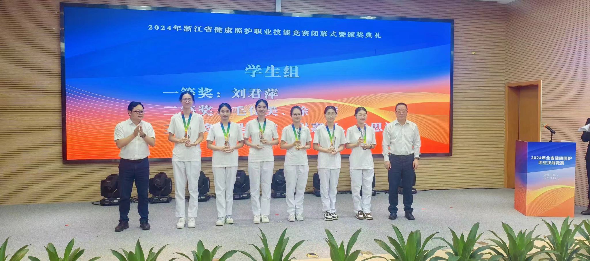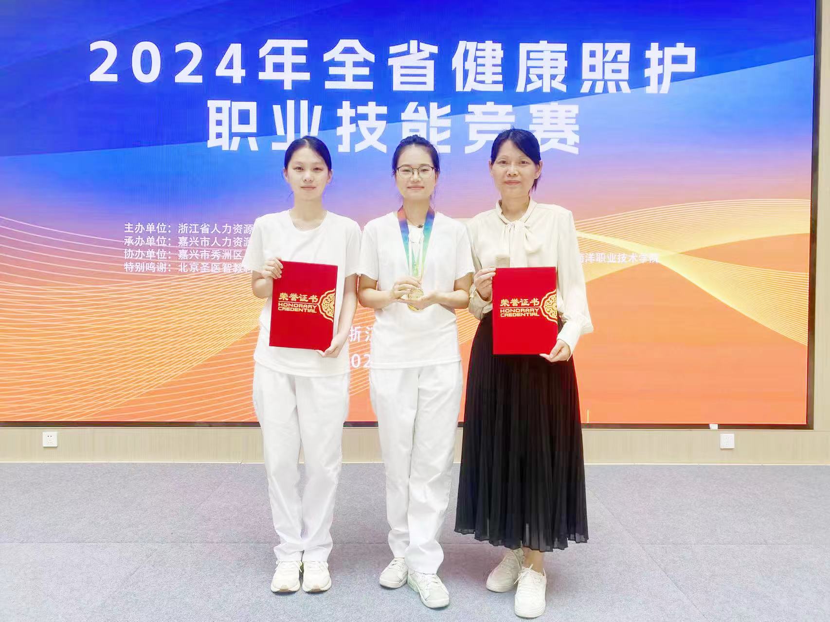 10月11日至13日,2024年浙江省健康照护职业技能竞赛在嘉兴南洋职业技术学院举办。我校彩虹鱼康复护理学院刘君萍、叶巧巧两位同学代表杭州市参赛,不畏强敌,沉着冷静,发挥出色,刘君萍同学荣获学生组唯一的一等奖,叶巧巧同学荣获优胜奖,成绩优异。