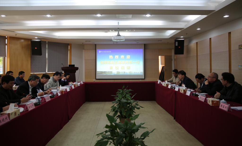 随后,双方在行政楼第四会议室举行座谈会。贾文胜从历史沿革与发展现状、政府支持与办学属性、跨界融合与校企共同体、专业发展与服务社会等方面介绍了我校的办学情况。他提出,高职教育的进一步发展需要政府更加重视、行业企业更加自觉、学校办学更加自主、家长社会更加认同。