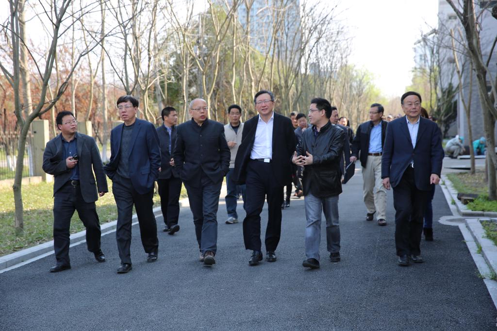 来宾在安蓉泉、贾文胜的陪同下,实地走访了友嘉机电学院、学校实训中心暨杭州市公共实训基地、达利女装学院、电梯实训基地,了解我校在校企共同体建设、社会服务等方面的情况。