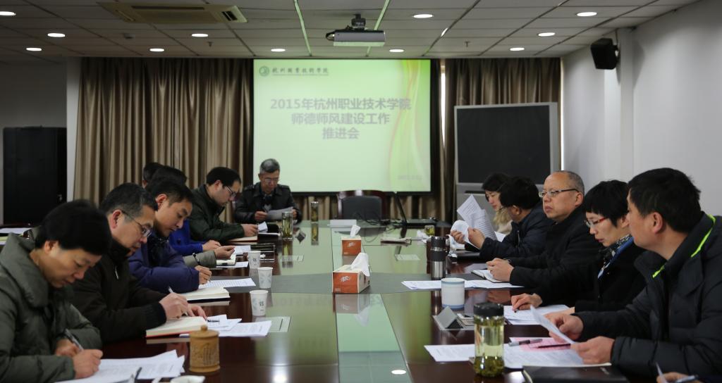 312日上午,我校2015年师德师风建设工作推进会在第一会议室召开,各二级学院、继续教育学院、人文社科部、图书信息中心、资产经营管理有限公司以及职能部门主要负责人参加会议。校党委书记安蓉泉出席会议并讲话,副校长许淑燕主持会议。
