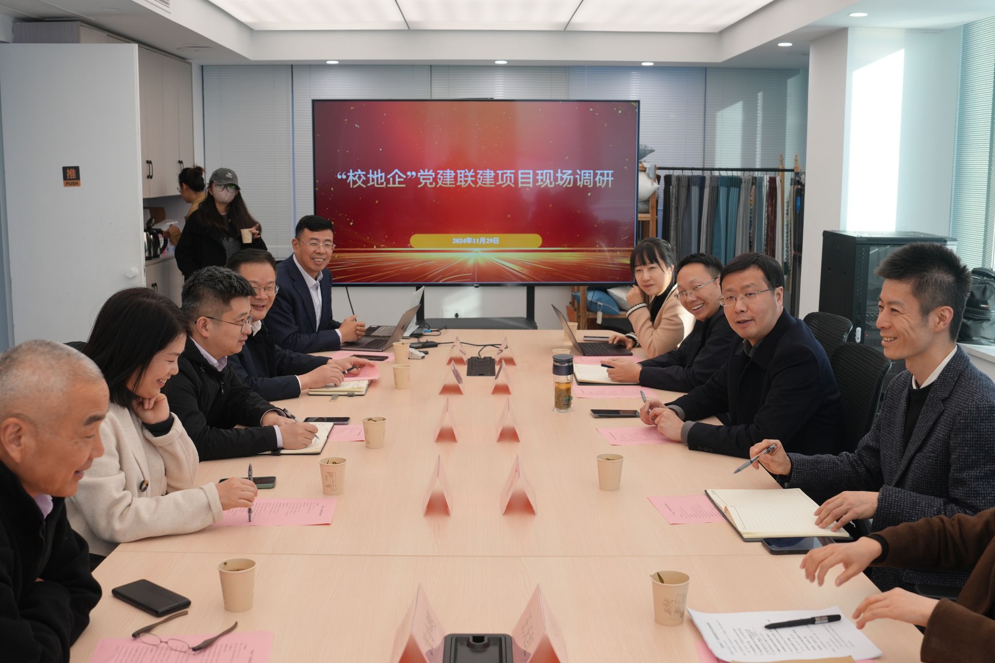 11月29日,校党委副书记赖明诚一行赴龙渡湖国际时尚产业学院开展“校地企”党建联建项目现场调研,海宁许村镇党委委员陆凛及海宁市家用纺织品行业协会、企业代表参加调研,校党委委员、宣传部部长张杰及组织部、宣传部、团委、工会、达利女装学院等相关负责人陪同。
