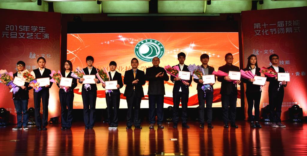 12月24日18点,我校2015年学生元旦文艺汇演暨第十一届技能文化节闭幕式在图书馆一楼报告厅隆重举行。党委书记安蓉泉、校长贾文胜、副校长许淑燕、纪委书记陈泉淼、副校长陈加明、党委委员金徐伟出席本次晚会。此外,第十一届技能文化节组委会成员、外校嘉宾及部分在校师生也一起观赏了晚会。