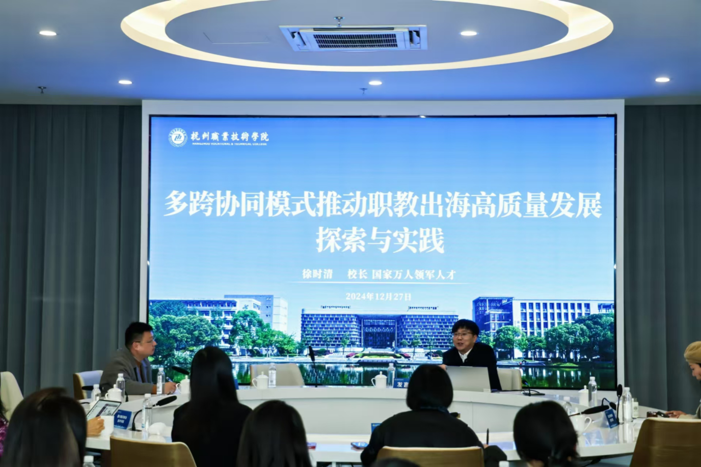 徐时清以“多跨协同模式推动职教出海高质量发展探索与实践”为题,分享了杭职院在职业教育国际化方面的创新探索与实践成效。他表示,学校坚持教随产出、校企同行,以语言为交流工具,以技能为合作纽带,以文化为传播桥梁,创新打造了多跨主体互动共育、多跨平台共建共享、多跨功能融汇融通的“职教出海”杭职模式。