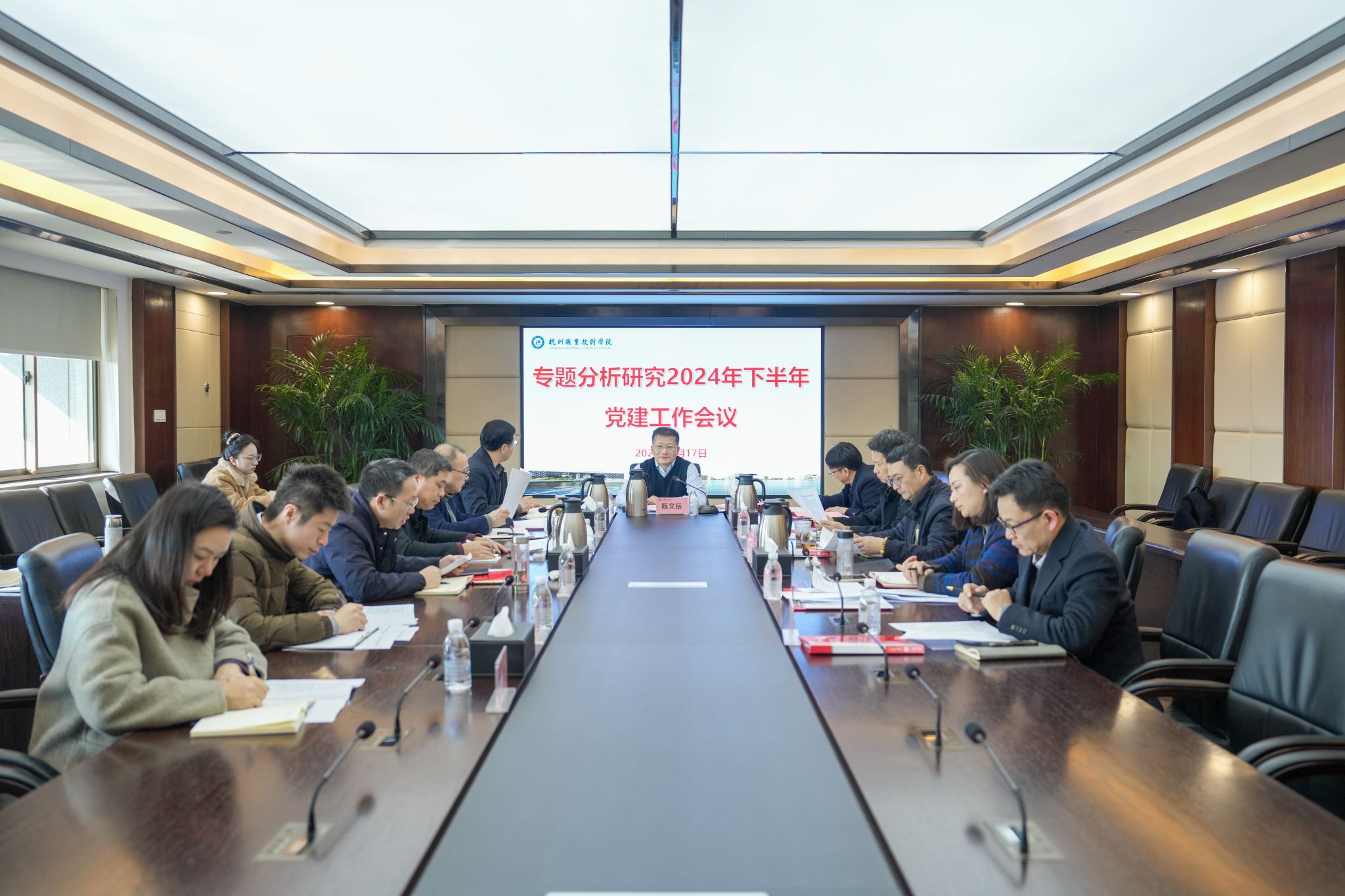 1月17日上午,学校专题分析研究2024年下半年党建工作会议在行政楼528会议室召开。校领导班子成员,办公室、组织部、宣传部、纪委办等职能部门负责人参加会议。校党委书记陈文岳主持会议并讲话。