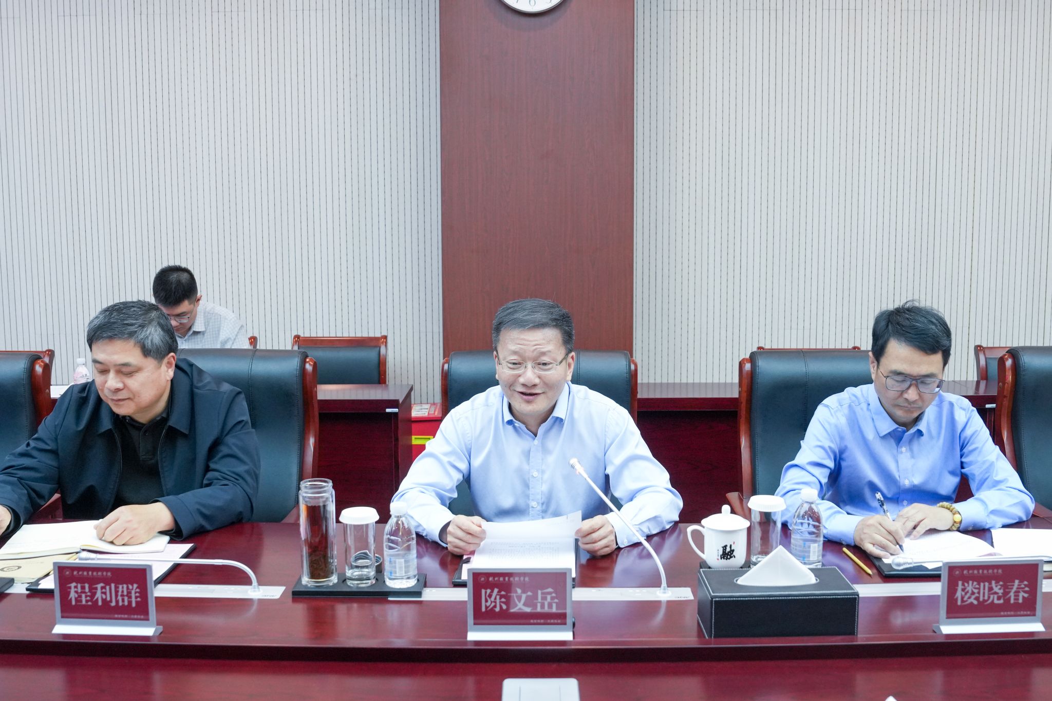 4月17日下午,上海师范大学天华学院董事长邹荣祥一行来访我校,校党委书记陈文岳、副校长楼晓春、副校长程利群,办公室、科研处、教务处等相关部门负责人参与接待。