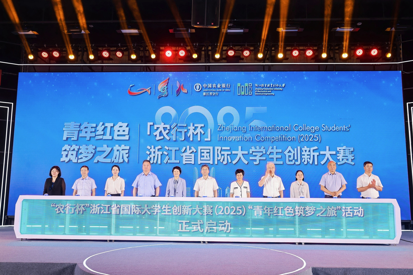 5月21日上午,浙江省国际大学生创新大赛(2025)“青年红色筑梦之旅”活动启动仪式在杭州市滨江区中国数谷举行。省委教育工作委员会委员,省教育厅党组成员、副厅长陈峰,省科学技术协会二级巡视员王央杰,杭州高新区(滨江)管委会副主任、副区长包嘉颖,浙江机电职业技术大学党委副书记、校长贺星岳,中国农业银行浙江省分行党委委员、副行长胡隽,省教育厅职成教处、高教处负责人,团省委学校部、省学生联合会负责人,中国联通浙江分公司、省内部分高校领导出席活动。我校党委委员、副校长程利群受邀参加本次活动,并出席“青年红色筑梦之旅”团队出征仪式。