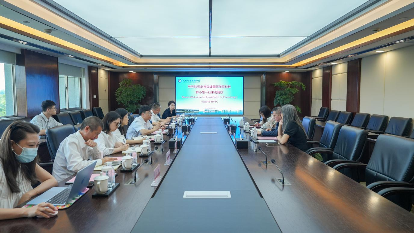 徐时清对林小雄一行的来访表示热烈欢迎,详细介绍了我校在国际化办学领域的创新实践与特色做法。他表示,近年来,学校秉持“教随产出,校企同行”国际化办学理念,创新探索多跨协同赋能“职教出海”,着眼区域产业转型升级和国际产能合作,以服务产业“走出去”发展需求为导向,不断丰富拓展留学生项目、丝路工匠学院、“中文+职业技能”教育等项目,努力打造职业教育国际化办学品牌,全面提升国际交流合作水平,为“一带一路”建设和国际产能合作提供人力资源支撑。