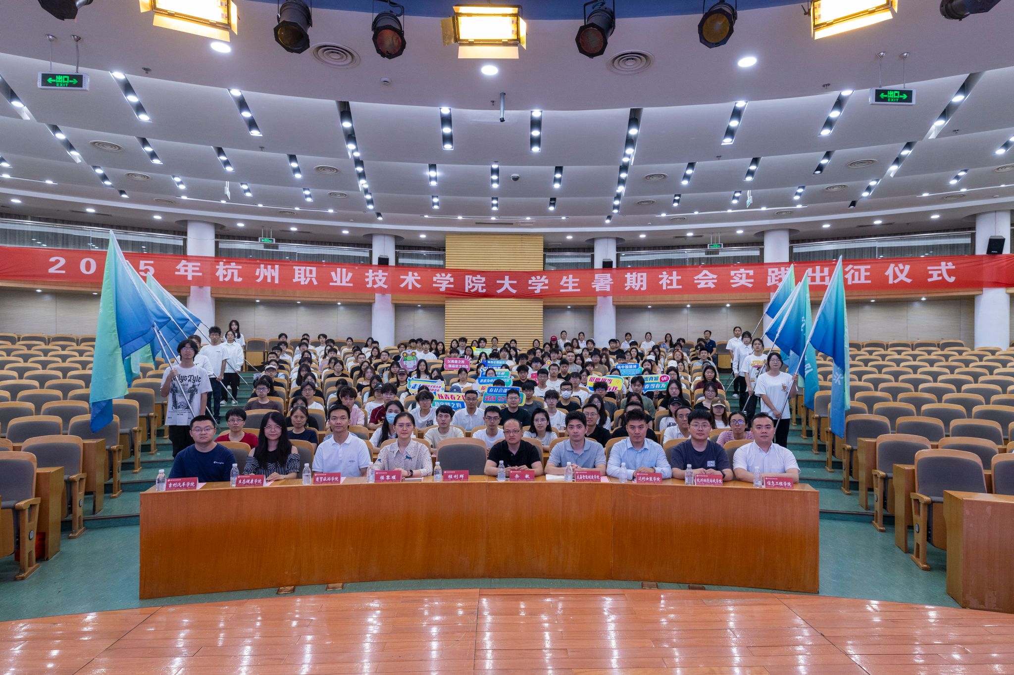 6 月 20 日,我校 2025 年暑期社会实践出征仪式在行政楼二楼报告厅举行。学校党委委员、副校长程利群,杭州日报城市新闻中心报道一部主任余敏,校团委、各二级学院团总支负责人,各实践队伍指导教师及学生代表出席仪式。