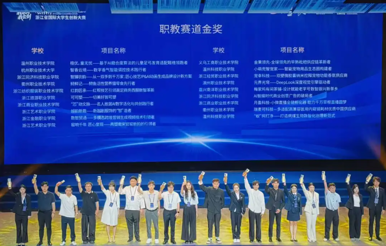 7月11日-13日浙江省国际大学生创新大赛(2025)决赛在浙江机电职业技术大学举办,杭州职业技术大学参赛团队表现卓越,一举斩获3项金奖、4项银奖(铜奖另行公布),入围决赛项目数、金奖数量及以小组第一晋级5强争夺赛均实现突破,取得历史性佳绩!