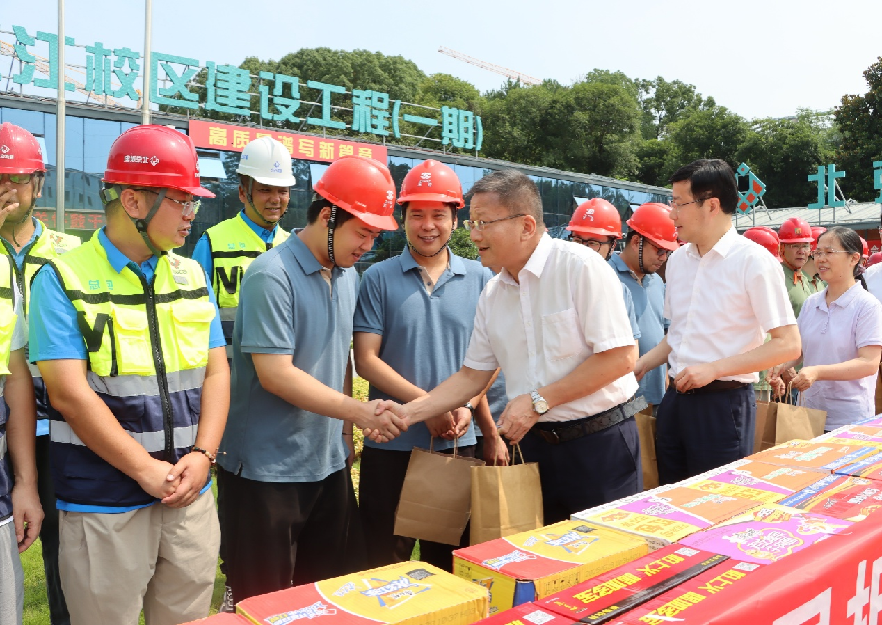炎炎夏日里的关怀,让一线建设者倍感温暖、备受鼓舞。工程建设专班将把学校的关心厚爱转化为干事创业的强大动力,以更加饱满的热情、更加务实的作风坚守岗位、履职尽责,确保新校区建设各项工作稳步推进。