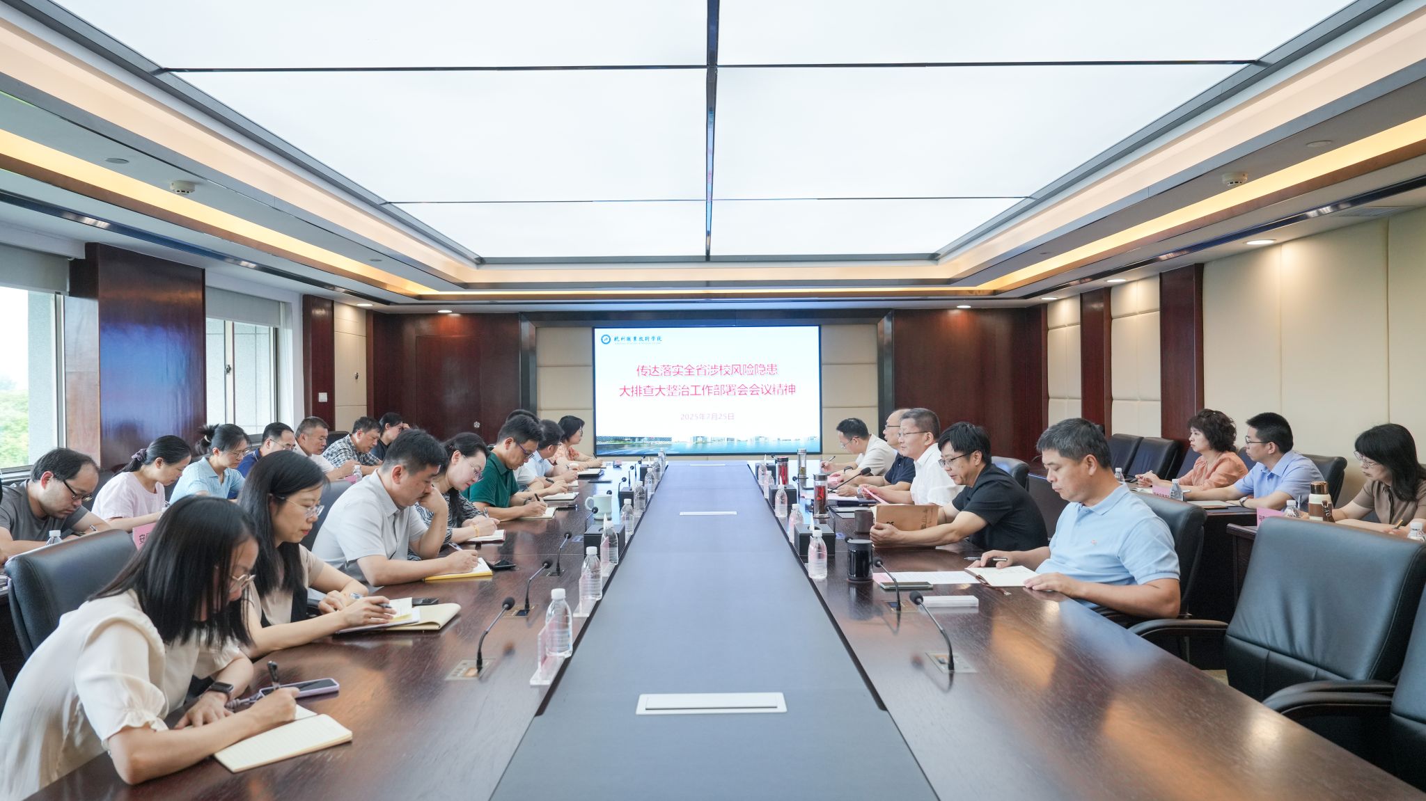 7月25日上午,学校召开涉校风险隐患大排查大整治工作部署会。校领导班子成员,各部门及二级学院负责人参加会议。