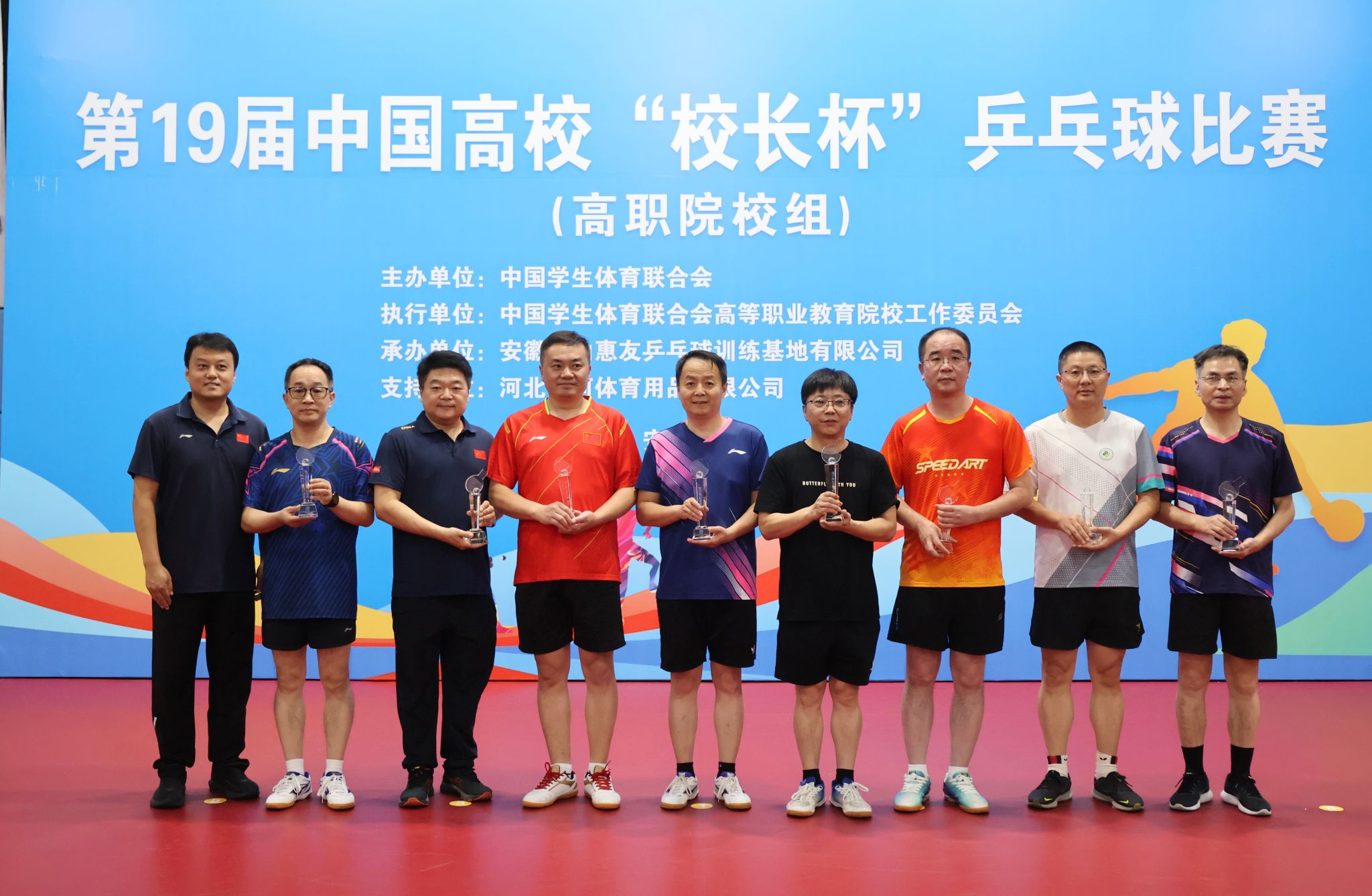 8月6日至8日,第19届中国高校“校长杯”乒乓球比赛(高职院校组)在黄山惠友乒乓球训练基地举行。中华人民共和国前驻德国大使、中德友好协会会长史明德,教育部学生体育协会联合秘书处党支部书记兼秘书长刘立新,黄山市黄山区区委书记张旭等有关领导出席开幕式。我校校长徐时清带队代表学校参加比赛,获得“校长杯”男子青年组单打亚军。