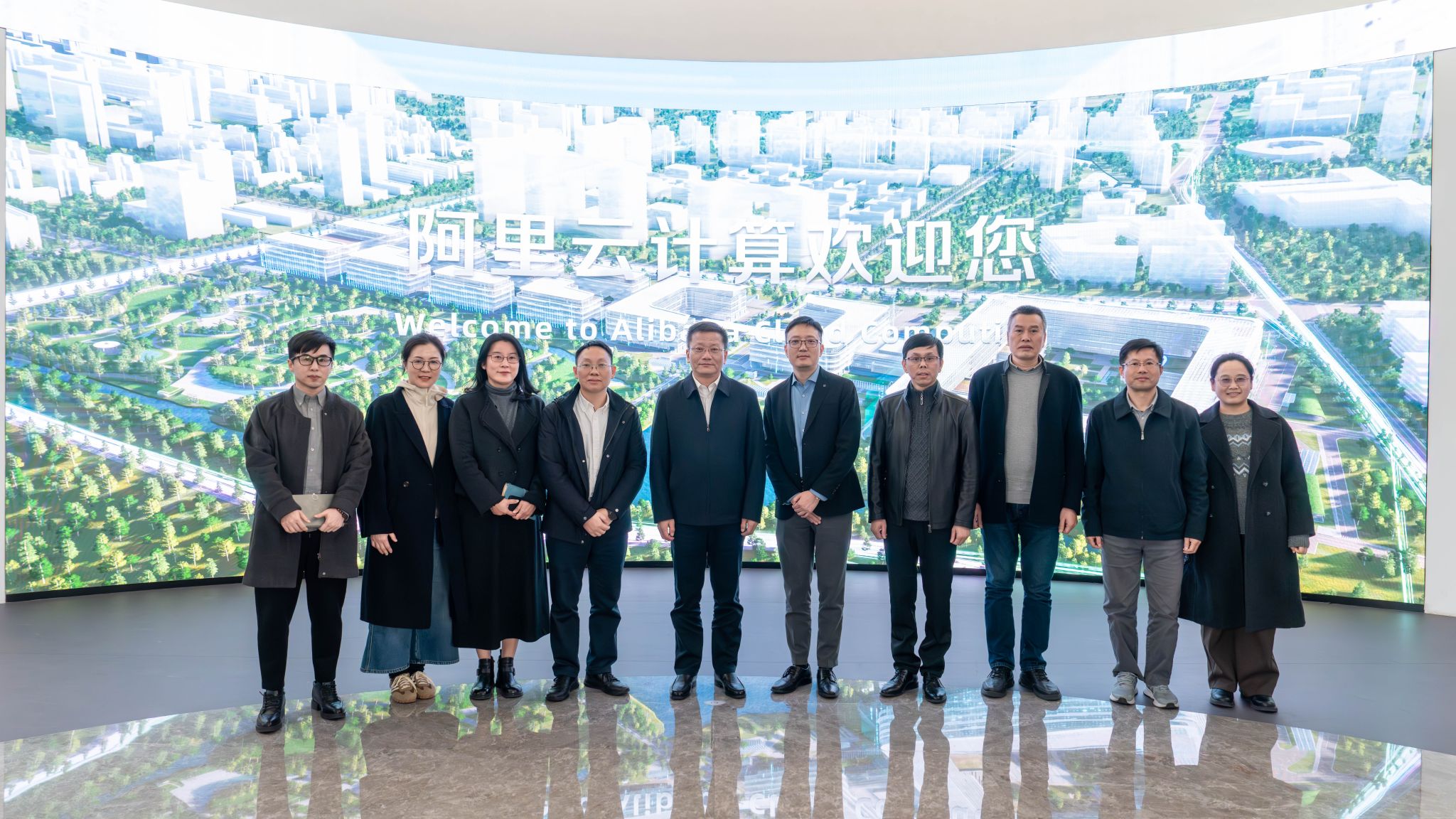 在阿里云展厅,调研组深入了解阿里云在云计算、大数据、人工智能等前沿技术领域的最新成果,以及这些技术在数字设计、智能制造、智慧教育等场景中的实际应用。