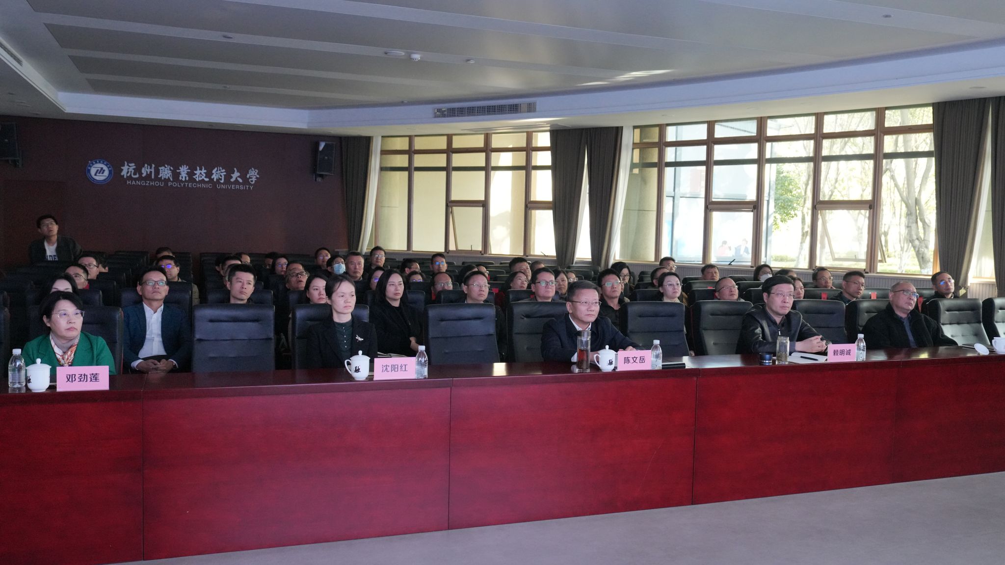 11月21日下午,杭州职业技术大学在行政楼117会议室召开全校干部警示教育大会。校领导班子成员、全体中层干部参加会议。会议由校纪委书记沈阳红主持。