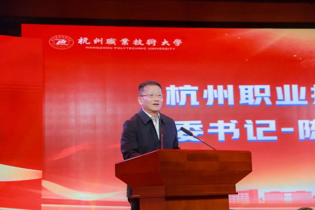 活动伊始,校党委书记陈文岳致辞。他代表学校向受表彰的先进单位、优秀教师及获奖学子致以热烈祝贺,向广大师生员工表示诚挚敬意。陈文岳指出,2025年是学校发展具有里程碑意义的一年,成功升格职业本科、新安江校区进展顺利、再次立项国家双高校,事业发展硕果累累。学校以“笃学砺能·融以至善”为主题大力推进学风建设,打造特色品牌,让优良学风蔚然成风。杭职大学子在各领域奋勇争先,技术技能之星、创新创业之星等优秀学子在顶级赛事中屡获佳绩,众多学子投身志愿服务,彰显青年担当。他寄语杭职大学子要以“笃学”立身锤炼本领,以“砺能”立业坚守匠心,以“担当”立行融入家国发展。最后,陈文岳祝愿广大师生怀揣热爱,在2026年发展新征程中为学校高质量发展续写精彩新篇章。