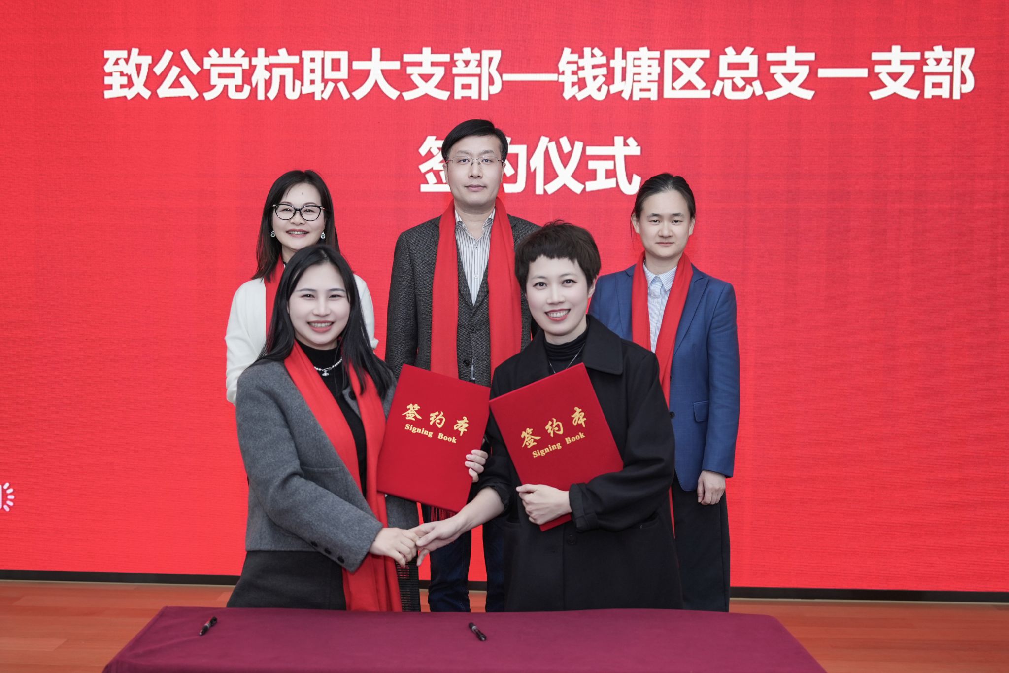 蔡善强与徐进在致辞中充分肯定本次活动在服务国家战略、促进文明互鉴方面的重要意义,高度评价了杭职大支部与钱塘总支在服务区域发展和对外交流中的积极作用。赖明诚表示,学校将依托在职业教育、人才培养、应用科研等方面的综合优势,以此次签约为新起点,推动支部在组织共建、履职协同、服务联动、资源共享等方面深化合作。