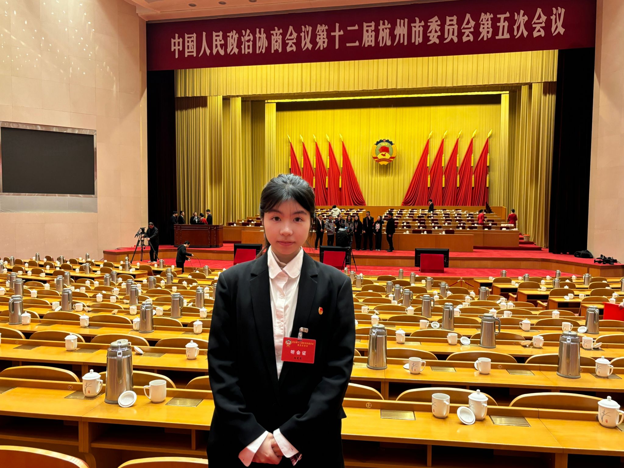 近日,中国人民政治协商会议第十二届杭州市委员会第五次会议在浙江省人民大会堂隆重开幕。杭州职业技术大学杭州动漫游戏学院学生杨雯雯作为代表受邀列席会议,现场感受政协会议的协商民主氛围。