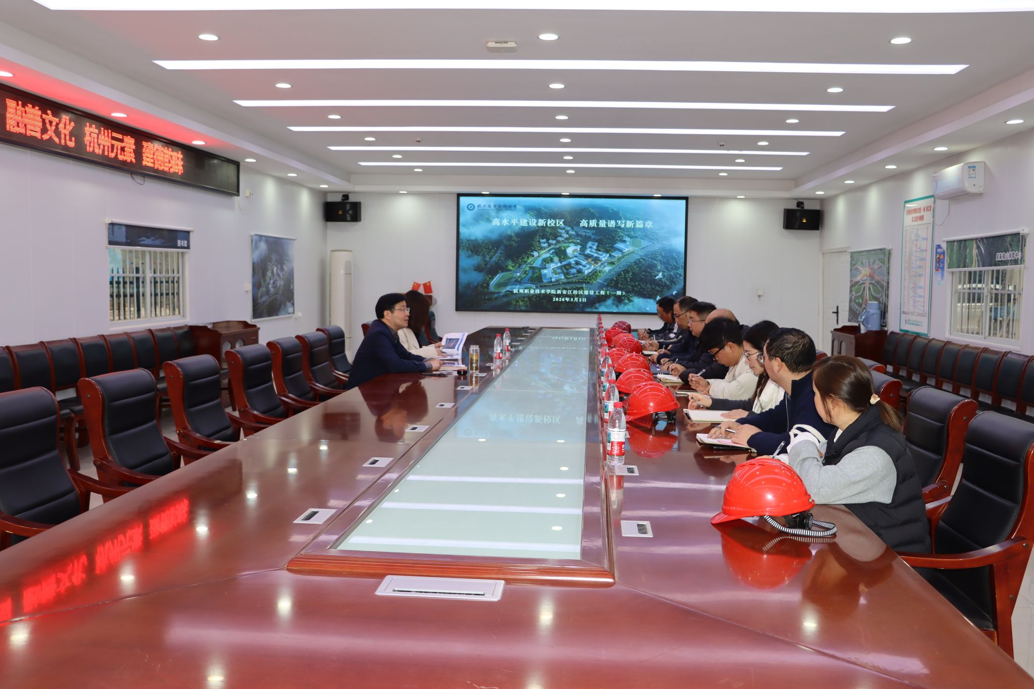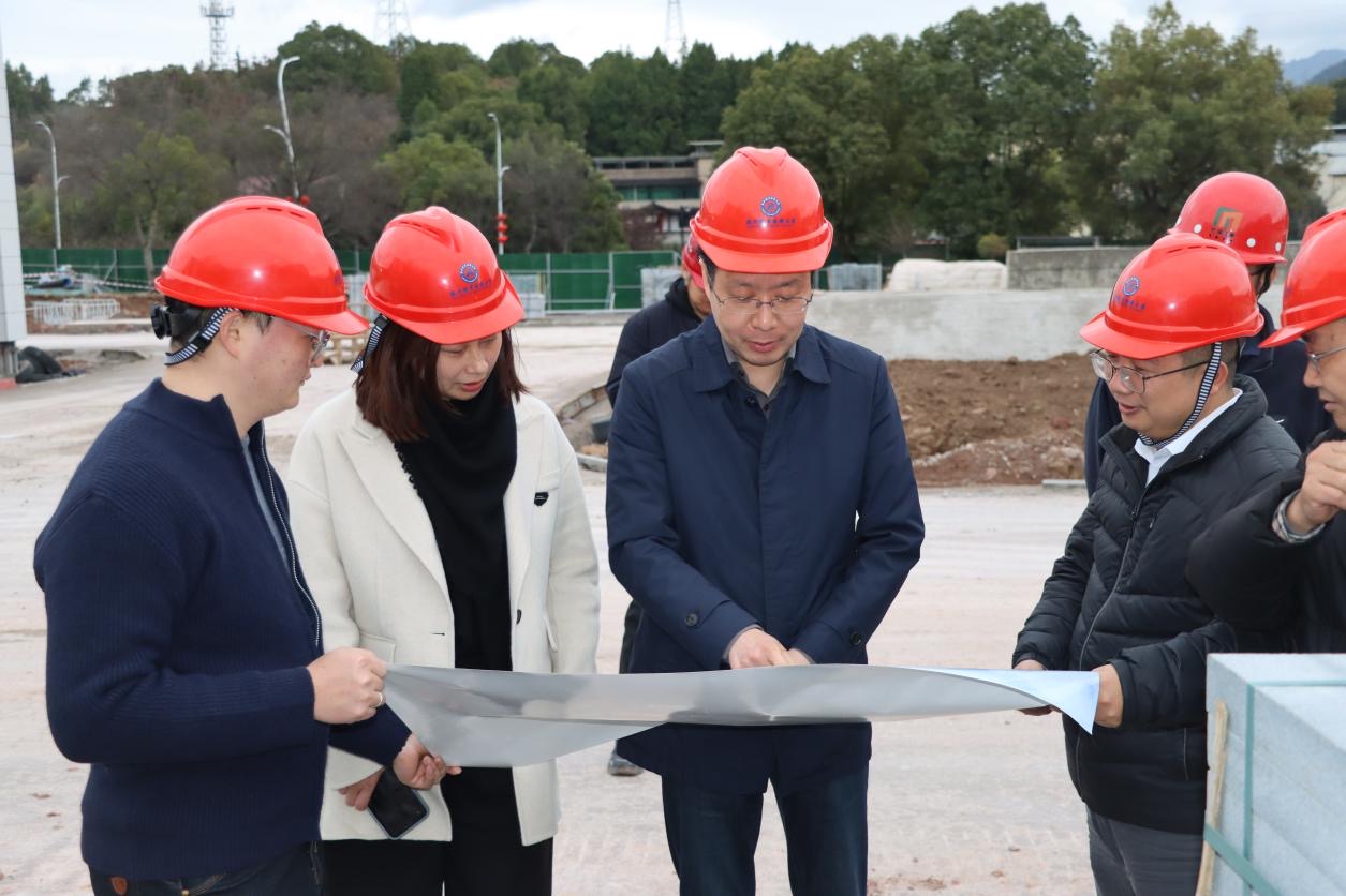 调研过程中,赖明诚一行深入项目施工一线,实地了解工程建设推进情况,认真听取支部书记张丽泉关于新安江校区建设进展、特色亮点、取得成绩及临时党支部建设整体情况的工作汇报,围绕支部工作重点任务、党建品牌打造等方面与相关人员开展深入交流。