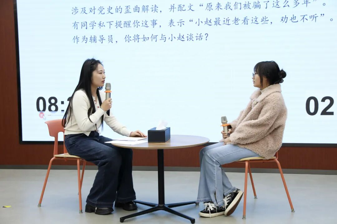 比赛紧扣辅导员日常工作实际,设置案例研讨和谈心谈话两大核心环节,全方位、多维度考查辅导员的理论运用能力、问题研判能力、应急处突能力和教育引导能力,既是对辅导员专业能力的全面检验,更是对一线育人实践的深度淬炼。