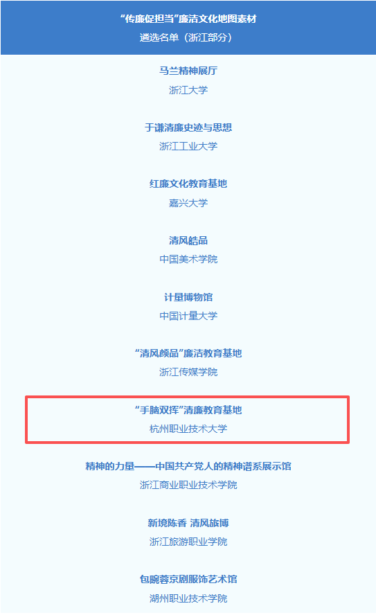 近日,教育部发布《关于第十届高校廉洁教育系列活动结果的公示》,我校“手脑双挥”清廉教育基地入选“传廉促担当”廉洁文化地图素材。