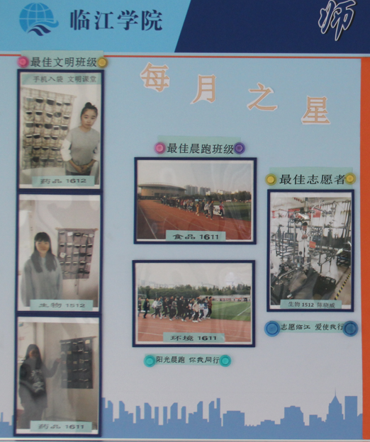 “课堂文明之星”是以“抓严、抓实”手机入袋活动为目标,每月根据各班上交的手机入袋情况,结合学生会督检,综合测算结果评选出三个“星级班级”,以此来推动临江学院“课堂文明”工作的开展。“集体晨跑之星”是临江学院自本学期开学起就要求各班按照集体晨跑的制度执行,临江学院团总支也采取了制定相关激励政策、落实班主任值班制度等措施保障班级集体晨跑的有效运行,每月评选的五个“星级班级”更是减少了“晨跑即签到”情况的发生。“志愿者之星”是每月以临江学院青年志愿者活动为依托,结合具有临江特色的社团活动在校内、学生公寓区开展丰富多彩的志愿者活动,促进了临江学院“宿舍文明”的建设。